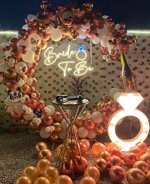 Elegant balloon decoration for bride-to-be celebrations with custom themes and photo-ready setups.